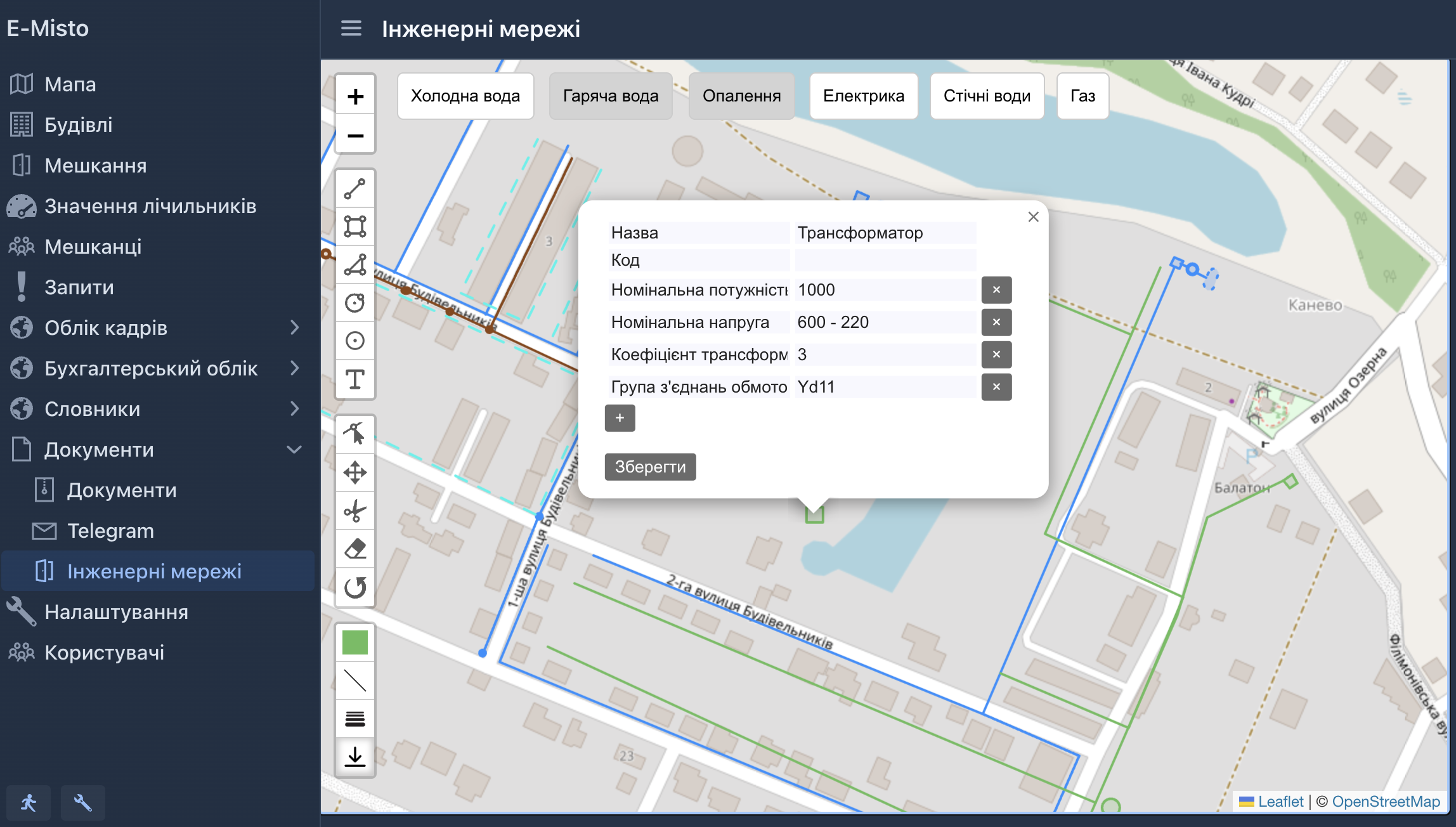 Ведення електронного реєстру будівель, земельних ділянок та інженерних мереж.